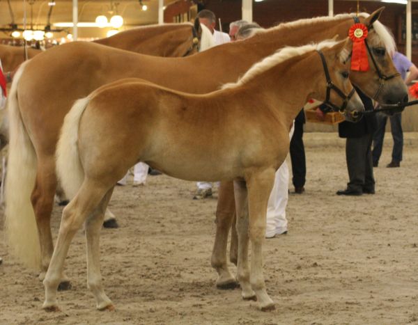 Onze veulens Whistler en Nisan waren geselecteerd voor het veulenkampioenschap en beide veulens lieten zien waar stal Honesch voor staat: moderne Haflingers met goede bewegingen.